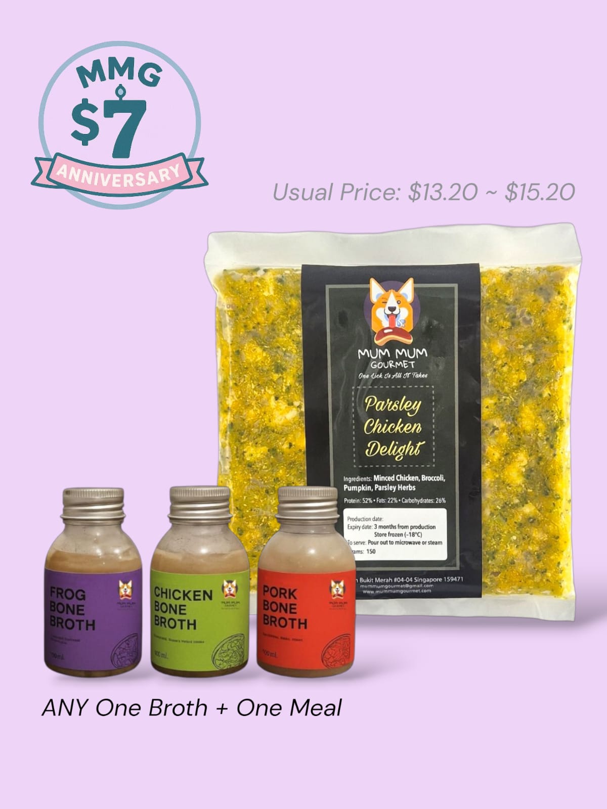 WE ARE 7! To make this birthday even more special! We've created 12 special birthday sets, featuring 12 of MMG’s hot flavours, each at just $7, comes with a full bottle of broth 🐾