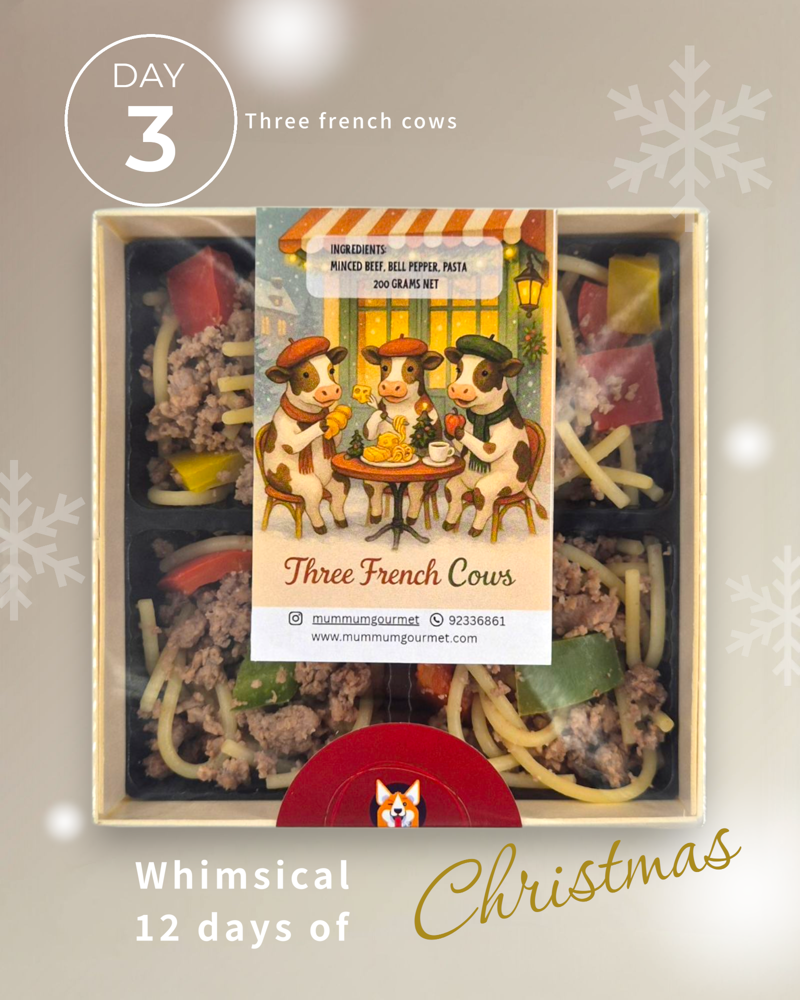 On the third day of Whimsical Christmas, the streets of Paris were dusted with snow, and the air smelled like magic and pasta!