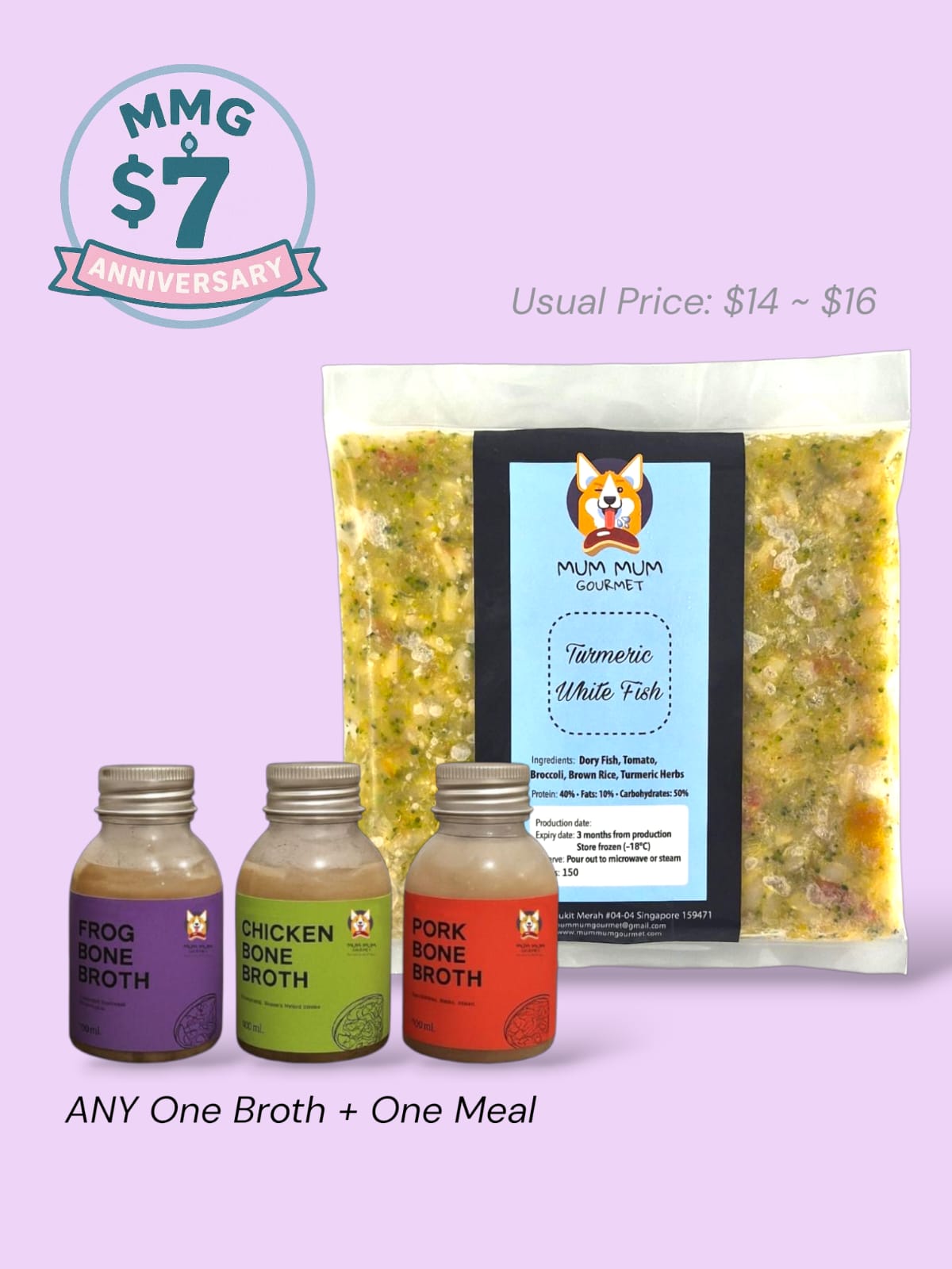 WE ARE 7! To make this birthday even more special! We've created 12 special birthday sets, featuring 12 of MMG’s hot flavours, each at just $7, comes with a full bottle of broth 🐾